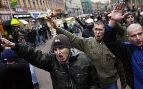 ويعتبرون هم من الغالبية العظمى مقارنة بالدول الأوروبية الأخرى فترجع اسبابها في روسيا إلى الاعتقاد بسمو العرق السلافيانى والتوازن الاقتصادى حيث تعتمد الحكومة الروسية أحيانا إلى العمالة الأجنبية والسماح إلى بعض الجنسيات الآسيوية والعربية وبعض دول أفريقيا الفقيرة الي الهجرة لكسب لقمة العيش مما يشكل غضبا عارما في وسط غالبية فئات الشعب الروسي لاعتقادهم بأن الاحقية لهذه الوظائف ترجع الي الشعب الروسي أولا ولا يحق لأي شخص كان أن يأخذ أي وظيفة بدلا من المواطن الروسي حيث قد يسبب هذا الموضوع ارتفاع نسبة البطالة بين الشباب الروسي وعدم استيعاب ميزانية الحكومة لصرف الأموال وانخفاض الرواتب ومن ثم الفقر.